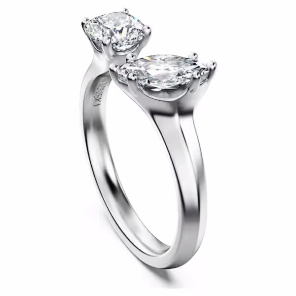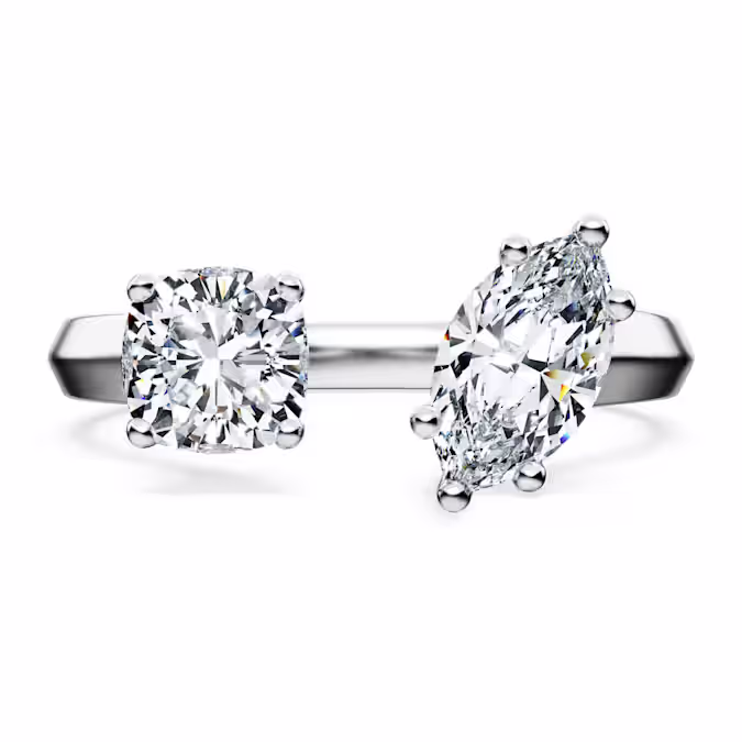 Два выращенных в лаборатории бриллианта огранки «кушон» и «маркиз» ярко сияют на кончиках этого открытого кольца из 14-каратного белого золота. Креативное и притягивающее взгляд украшение, сочетающее роскошь с мастерством. Сочетайте его с соответствующим ожерельем или серьгами для дополнительного сияния. Это украшение является частью коллекции Galaxy, созданной Джованной Энгельберт. Выращенные в лаборатории бриллианты в коллекции Galaxy оценены и сертифицированы IGI (Международным геммологическим институтом) в соответствии с 4C качества бриллиантов.