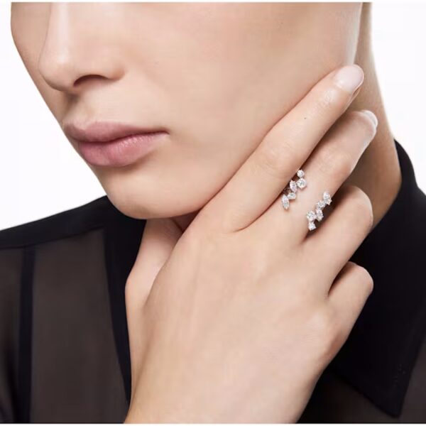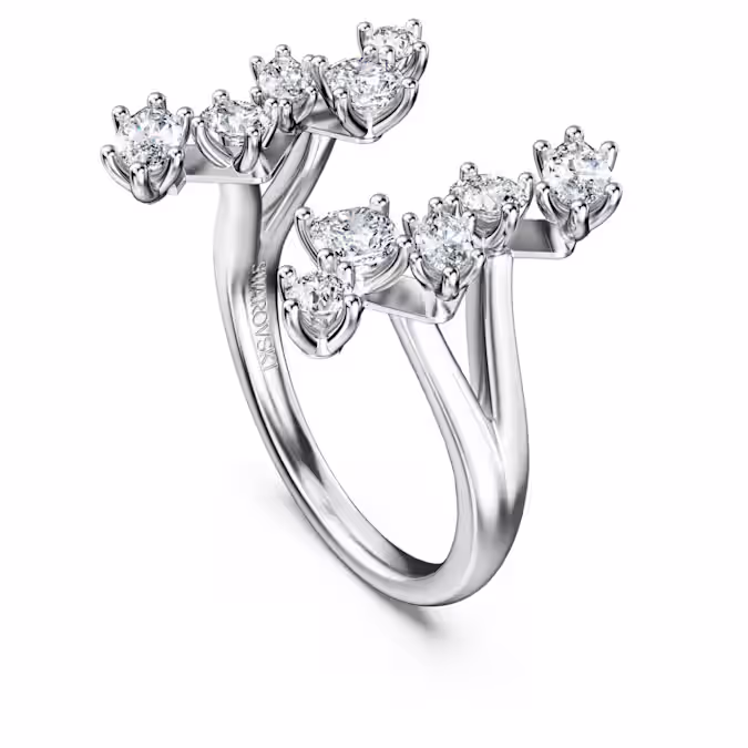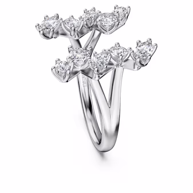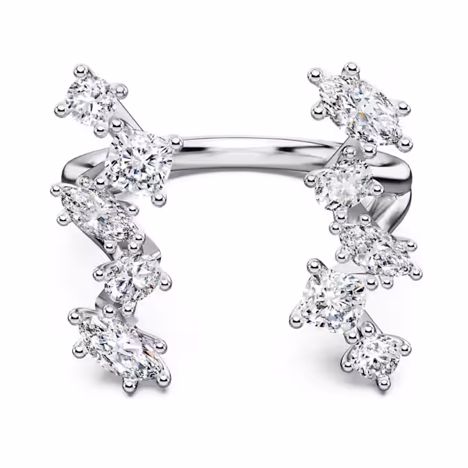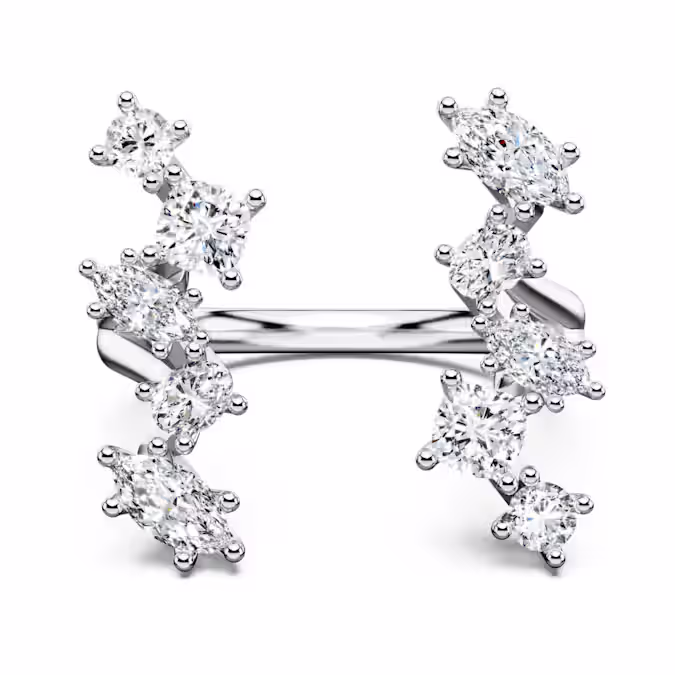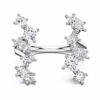Это яркое кольцо, созданное с собственным индивидуальным стилем, предлагает уникальный выразительный дизайн. Кольцо из 14-каратного белого золота выполнено с открытым концом и имеет ряд выращенных в лаборатории бриллиантов с каждой стороны. Зигзагообразное расположение и сочетание причудливых форм проецируют свет со всех сторон. Носите это кольцо с подходящими серьгами, когда требуется яркая роскошь. Это украшение является частью коллекции Galaxy, созданной Джованной Энгельберт. Выращенные в лаборатории бриллианты в коллекции Galaxy оценены и сертифицированы IGI (Международным геммологическим институтом) в соответствии с 4C качества бриллиантов.