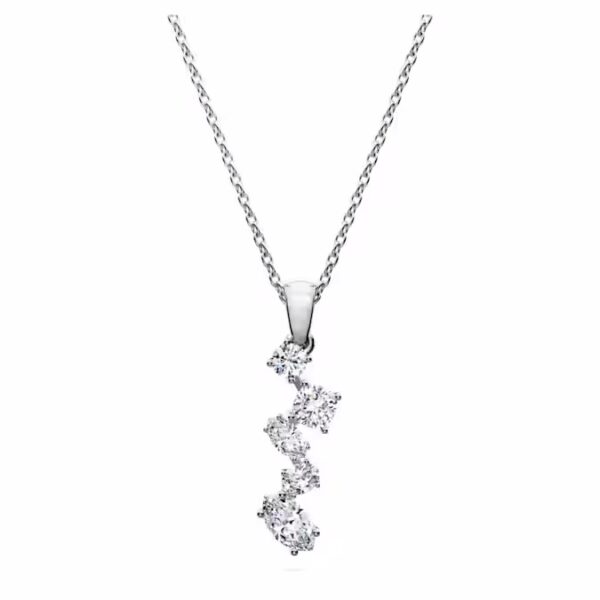 Эта подвеска Swarovski Created Diamonds — квинтэссенция игривой элегантности. Представленная на изящной цепочке с застежкой-карабином, конструкция из 14-каратного белого золота включает пять выращенных в лаборатории бриллиантов разных размеров и форм, расположенных под разными углами для динамического эффекта. Дополните яркий образ, сочетая эту подвеску с подходящими серьгами и кольцом. Это украшение сертифицировано IGI (Международным геммологическим институтом) и является частью коллекции Galaxy, созданной Джованной Энгельберт.