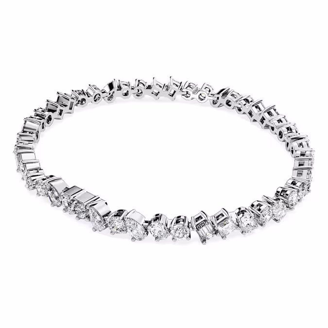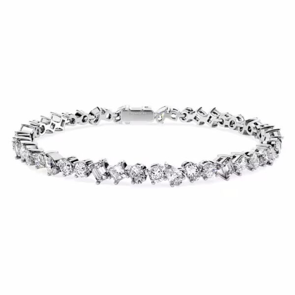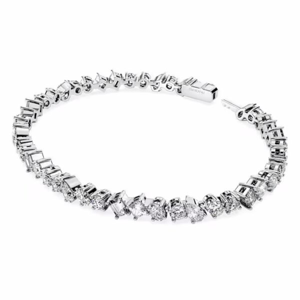 Этот искусно выполненный браслет с исключительной красотой в каждой детали окружит ваше запястье роскошью. Дизайн из 14-каратного белого золота включает в себя нить выращенных в лаборатории бриллиантов, представленных в различных причудливых формах. Неподвластное времени и повседневное украшение для себя или прекрасный подарок на памятную веху. Это украшение сертифицировано IGI (Международным геммологическим институтом) и является частью коллекции Galaxy, созданной Джованной Энгельберт.