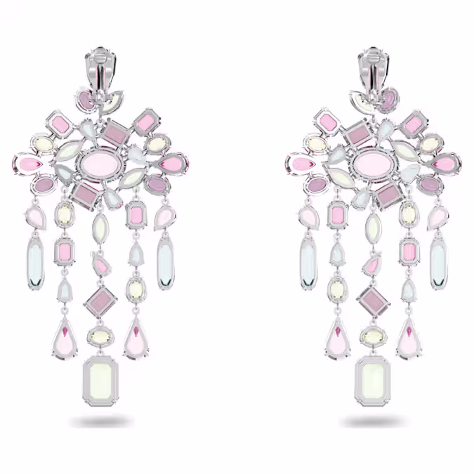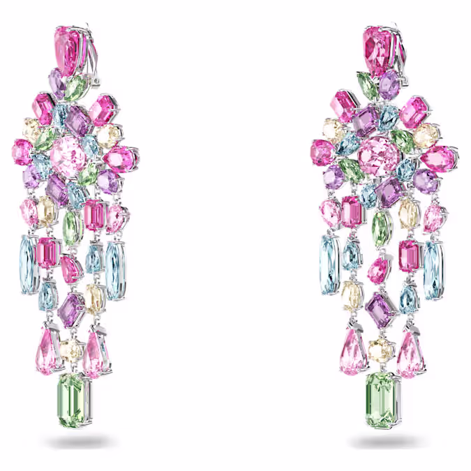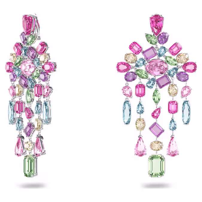 Смело надевайте эти крупные серьги-люстры из хрусталя, искусно выполненные из смеси ослепительно точных огранок и пастельных оттенков. Сочетайте их с элегантным пошивом, чтобы подчеркнуть минималистичные силуэты, или сочетайте их с драматичными украшениями для максимального гламура. Эти серьги являются частью семейства Gema, разработанного креативным директором Джованной Энгельберт для коллекции I.