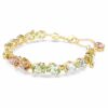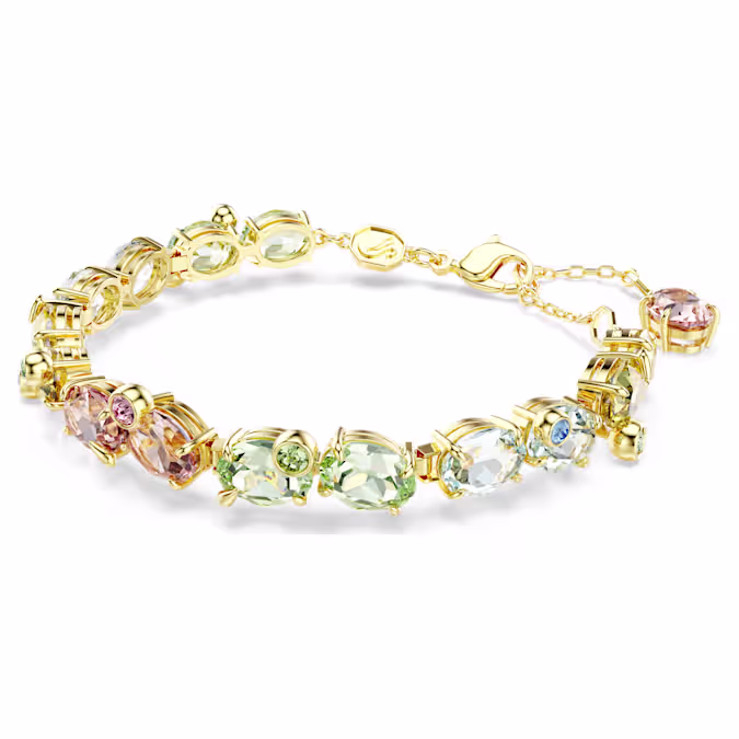 Этот яркий браслет Gema с искрящимся столкновением цветов идеально подходит для игривого самовыражения. Позолоченный дизайн представляет собой ряд крупных кристаллов в нескольких ярких оттенках, окруженных более мелкими кристаллами в радостной оправе с пузырьками. Профессиональная огранка и яркие цветовые сочетания мгновенно добавят энергии и света вашему стилю. Сочетайте его с соответствующим кулоном, чтобы смело поднять любой наряд.