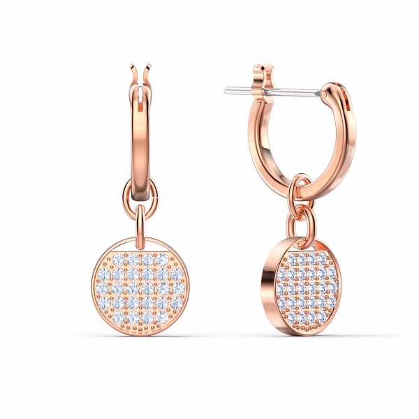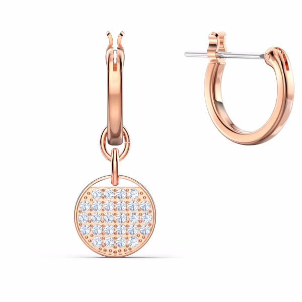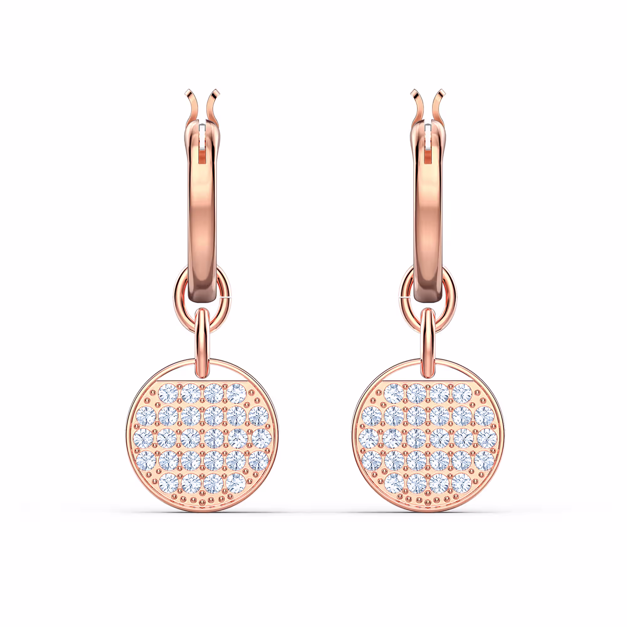 этот оригинальный дизайн предлагает множество вариантов ношения, каждый из которых идеально соответствует последним модным тенденциям. Серьги состоят из двух частей: кольца, покрытого кристаллами паве, и монетки, украшенной прозрачными кристаллами паве с одной стороны и одним сверкающим кристаллом с другой, отполированной до блеска. Подвески можно поворачивать, создавая разные образы, или снимать, чтобы подобрать более сдержанный вариант. Отличный и универсальный выбор для украшения повседневных нарядов.