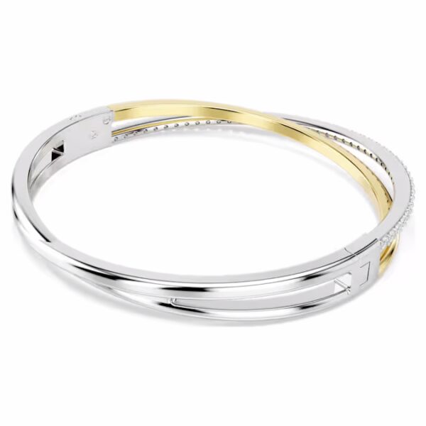 Этот скручивающийся браслет Hyperbola изготовлен с несомненным мастерством Swarovski. Две перекрывающиеся полосы представлены в сочетании золотого тона и родиевого покрытия, с круглыми цирконами Swarovski, помещенными в зубчатую оправу. Элегантный способ привнести интригу в любой наряд.