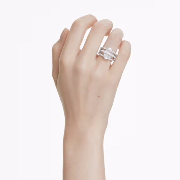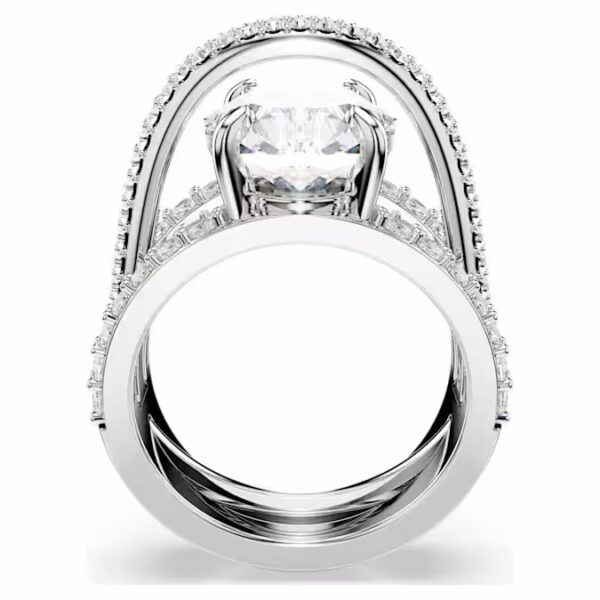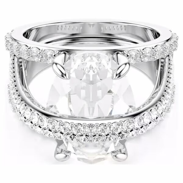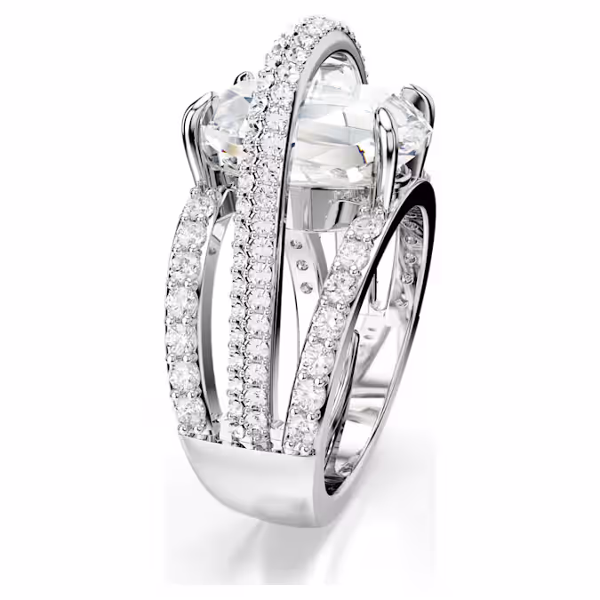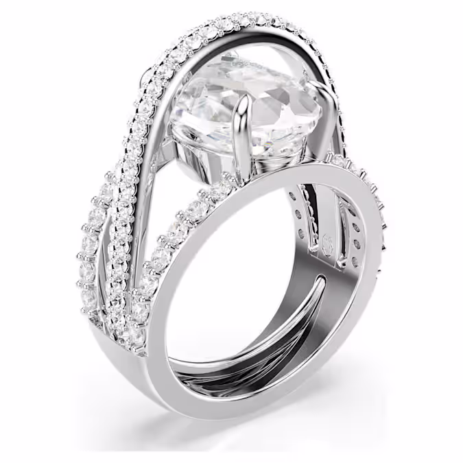 Это смелое кольцо Hyperbola — ослепительный образец мастерства Swarovski. Три покрытых родием кольца украшены прозрачными цирконами Swarovski в зубчатой оправе, а между ними для дополнительного сияния помещен кристалл овальной огранки. Сочетайте этот сложный дизайн с соответствующим браслетом, чтобы получить светлый образ. Это регулируемое кольцо оснащено специальным механизмом для изменения размера, что позволяет носить его на любом пальце. Если вам нужен размер 55 и меньше, мы рекомендуем выбрать 50–55. Если вам нужен размер 55 и больше, мы рекомендуем выбрать 55–60.