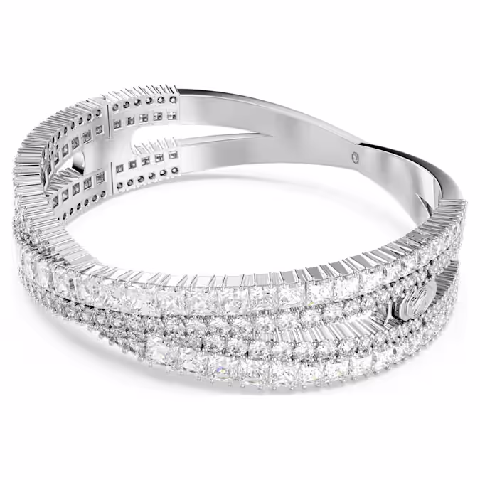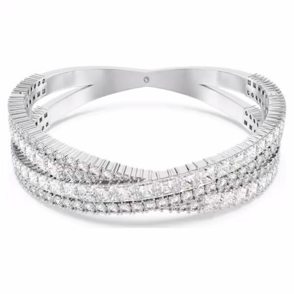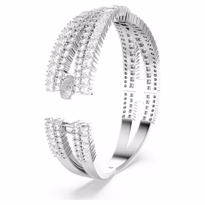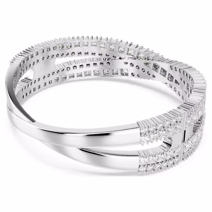 Вдохновленный вечным мотивом бесконечности, этот закрытый браслет Hyperbola дарит непреходящее сияние. Покрытое родием украшение имеет сложную конструкцию с разделенными шарнирами, которая огибает запястье с помощью множества прозрачных цирконий Swarovski в смешанной огранке. Искусно выполненный с невероятной детализацией, это эффектное украшение, которое придаст вашему стилю роскошь.