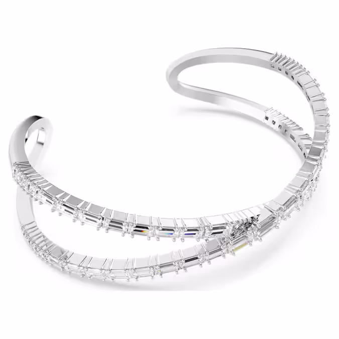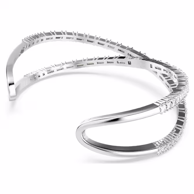 Ощутите безграничность времени с этим ярким браслетом Hyperbola. Покрытое родием украшение вдохновлено мотивом бесконечности и огибает запястье с помощью массива прозрачных цирконий Swarovski, искусно закрепленных для невероятной детализации. Идеальный способ выразить как экстравагантную, так и изящную стороны вашего стиля.