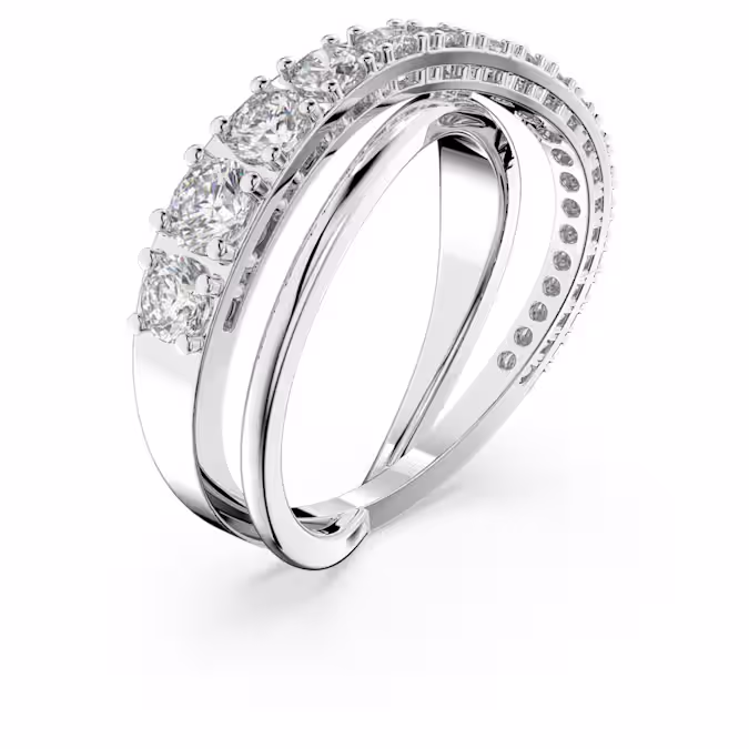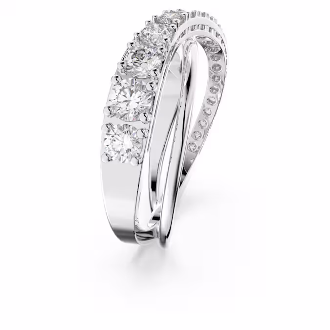 Неподвластное времени, но стильное, пуристическое, но блестящее. Это кольцо от Swarovski демонстрирует вдохновенный взгляд на спиральную тенденцию. Две мерцающие линии переплетаются в элегантные, нежные изгибы, одна из которых увенчана чудесно сверкающими белыми камнями, которые добавляют кольцу искрящееся сияние. Его простой дизайн делает его идеальным для повседневного ношения, дополняя ваш стиль ноткой блеска.