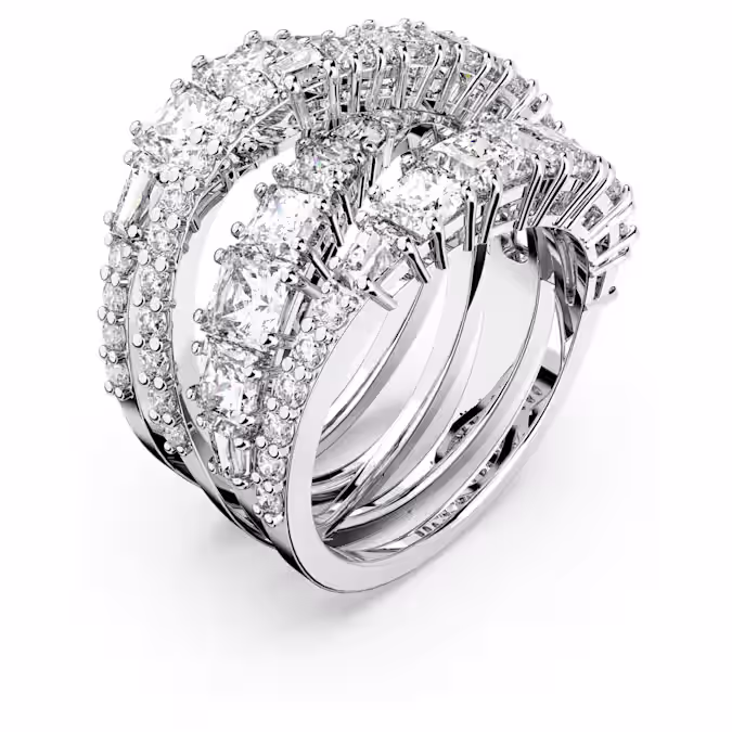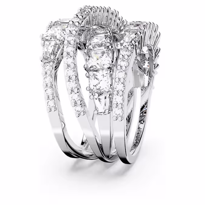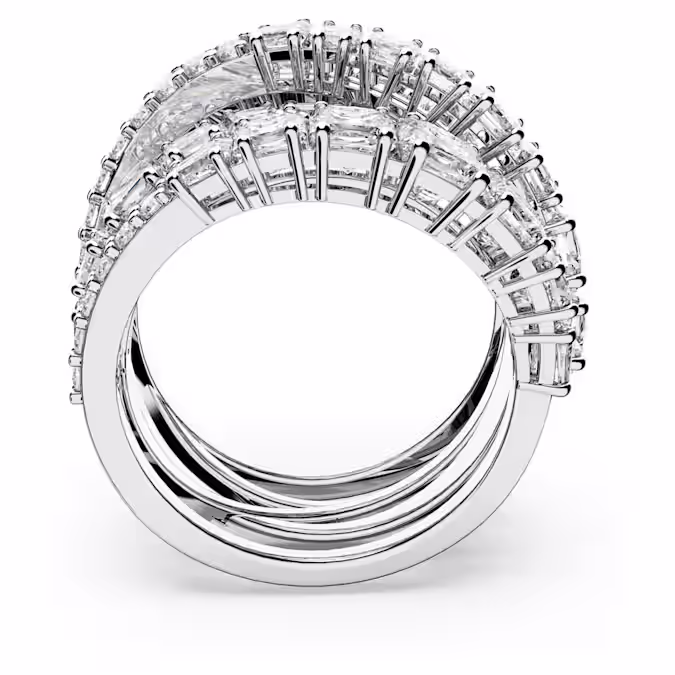 Замысловатое и роскошное, это чудесное кольцо Swarovski великолепно переосмысливает спиральный тренд. Мягко изогнутые линии белых камней разных размеров в круглой, квадратной и конической багетной форме сверкают во многих гранях. Дополненный мерцающей отделкой, элегантный дизайн делает его идеальным для украшения вашего стиля, добавляя сияющий штрих гламура к вашему образу.