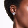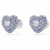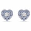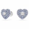Эти гвоздики в форме сердца — красочный способ привнести страсть в ваш стиль. Каждое родированное изделие было создано с клеточным дизайном для максимального объема. Чтобы усилить куполообразный эффект, они украшены круглыми синими цирконами Swarovski, закрепленными с помощью ослепительной техники шатонажа, в то время как в центре один яркий циркон Swarovski ловит свет со всех сторон. Сочетайте их с соответствующим кулоном для окончательного образа любви.