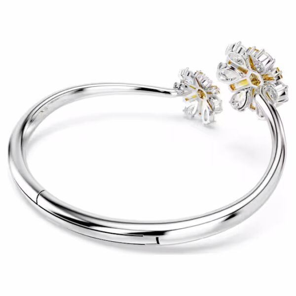 В ярком проявлении мастерства Swarovski этот браслет Idyllia сочетает в себе освежающее сочетание огранок и цветов. Покрытый родием дизайн включает два нежных цветка, точно выполненных из желтого и прозрачного Swarovski Zirconia, и с поразительным эффектом градиента для дополнительной современности. Яркое украшение, которое привнесет в ваш повседневный стиль нотку блеска природы.