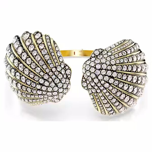 Окружите свое запястье естественной красотой океана. Этот браслет в морском стиле покрыт золотом и имеет два очаровательных мотива ракушек. Каждый из них был искусно украшен прозрачными круглыми кристаллами, установленными в черную эпоксидную смолу, что создает контраст тонов, который мгновенно притягивает. Носите его с парой подходящих серег из того же семейства и доведите свой пляжный шик до максимума.