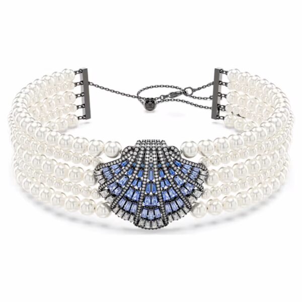 Вдохновленный тайнами океана, этот экстравагантный чокер является искусным примером мастерства Swarovski. На шее украшение представлено пятью рядами ярко-белых кристальных жемчужин, которые крепятся к мотиву ракушки с рутениевым покрытием. Это было искусно украшено массивом прозрачных круглых кристаллов, а также пленительным градиентом Swarovski Zirconia в прозрачных и синих тонах. Сенсационное изделие, которое преобразит ваш образ драматической волной роскоши.