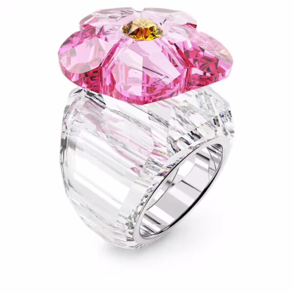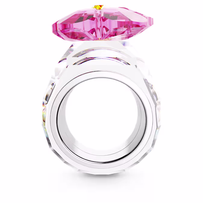 Это смелое коктейльное кольцо, подчеркнутое ярким оттенком цветочного цвета, сочетает яркие тона с современным дизайном. Изделие почти полностью выполнено из красиво ограненных кристаллов, с прозрачным кольцом, увенчанным цветком в сочном розовом цвете. Это ограниченный выпуск SCS, эксклюзивный онлайн только для членов SCS. На нем есть гравировка ограниченного выпуска.