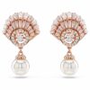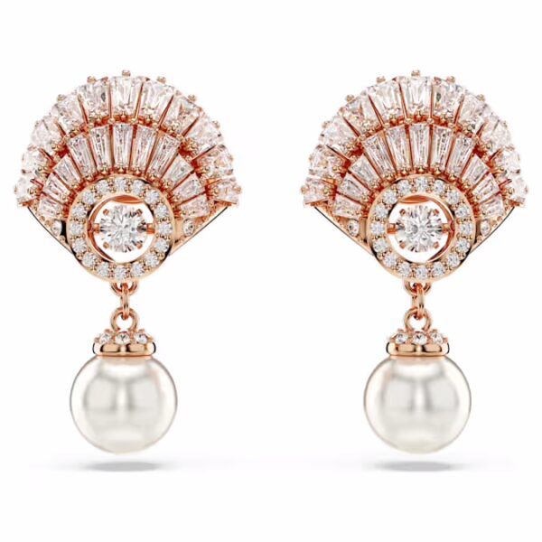 Эти потрясающие серьги Idyllia созданы для элегантного и спокойного стиля. Каждая ракушка покрыта розовым золотом и украшена массивом прозрачных цирконий Swarovski и прозрачным круглым танцующим кристаллом, который ловит свет. Украшения дополнительно украшены одной белой кристальной жемчужиной, которая изящно висит снизу. Гламурный выбор для дня или для вечерних мероприятий.