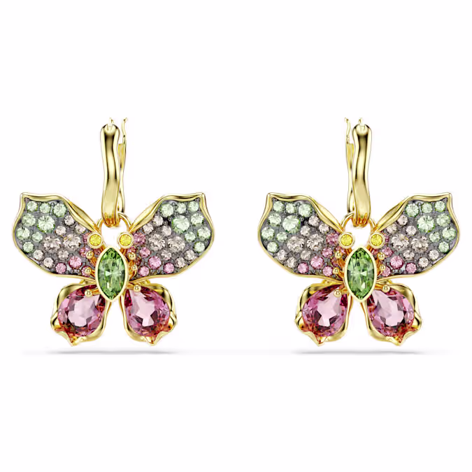 Эта потрясающая пара бабочек добавит радостного штриха в любой наряд. Каждая серьга украшена множеством кристаллов разных форм и цветов, а техники Swarovski pavé, Pointiage™ и chatonnage обеспечивают роскошную и точную отделку. Носите их вместе с соответствующим кулоном, чтобы усилить магию Идиллии.