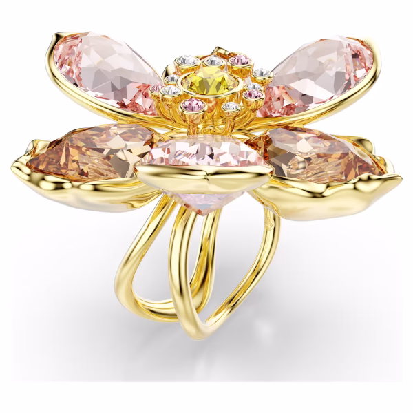 Воображение расцветает в этом кольце с золотистым покрытием из сада Идиллия. Вневременной дизайн раскрывает распустившийся цветок, величественно украшенный кристаллами различной огранки и цвета. Это чудесный способ привнести в ваш стиль нежные тона и вдохновленную природой радость. Это кольцо можно носить как отдельно, так и в сочетании с подходящим кулоном или серьгами из той же коллекции.