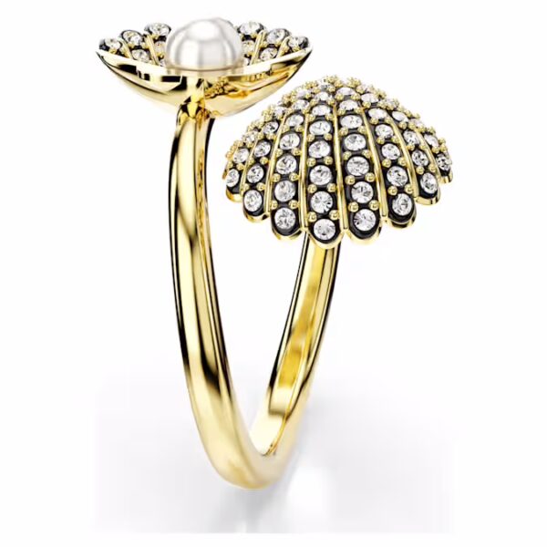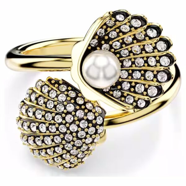 Подобно ослепительному сокровищу на берегу океана, это спиральное кольцо Idyllia было создано, чтобы привлекать взгляды. Позолоченный дизайн элегантно обвивает палец и имеет два сияющих мотива ракушек. Каждый из них был художественно украшен прозрачными круглыми кристаллами, установленными в черную эпоксидную смолу, с одной белой кристальной жемчужиной в центре одного из них. Носите его отдельно как роскошный элемент пляжного шика или сочетайте с соответствующим браслетом.