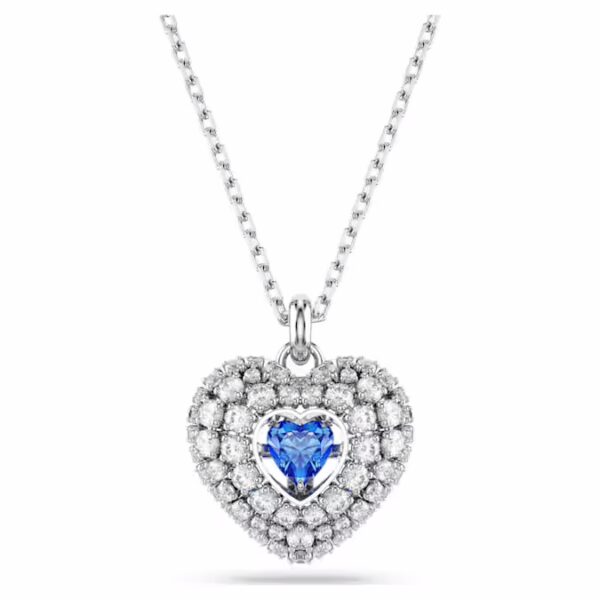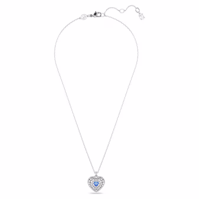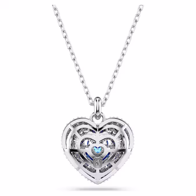Два сердца становятся одним в этой романтичной подвеске Swarovski. Мотив с родиевым покрытием был создан с использованием конструкции клетки для максимального объема. Для усиления куполообразного эффекта он украшен круглыми прозрачными цирконами Swarovski, закрепленными с помощью ослепительной техники шатонажа, в то время как в центре танцующий камень в форме сердца синего цвета ловит свет со всех сторон. Идеальный способ сказать «Я люблю тебя» кому-то особенному.