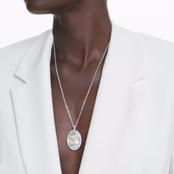 Благодаря мастерскому проявлению мастерства Swarovski, это поразительное украшение Idyllia примечательно в каждой детали. Подвеска с родиевым покрытием, надетая на длинную цепочку, отличается нежным микропаве по ободу, а также центральным овальным кристаллом, украшенным пленительным цветочным мотивом. Этот яркий цветочный дизайн выполнен из прозрачных грушевидных кристаллов и желтых цирконий Swarovski с эффектом сияющего градиента. Прекрасное изделие, которое наполнит ваш стиль светом.