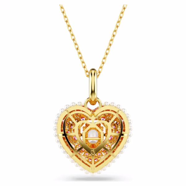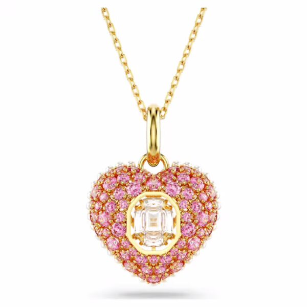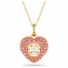 Позвольте этому яркому кулону Swarovski пленить ваше сердце. Позолоченный мотив был создан с клеточным дизайном для максимального объема и имеет ряд крошечных белых кристальных жемчужин по краю. Для усиления куполообразного эффекта он украшен круглыми розовыми цирконами Swarovski, закрепленными с помощью ослепительной техники шатонаж, в то время как в центре восьмиугольный танцующий камень ловит свет со всех сторон. Подарите это как особый сюрприз тому, кого вы обожаете.