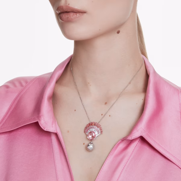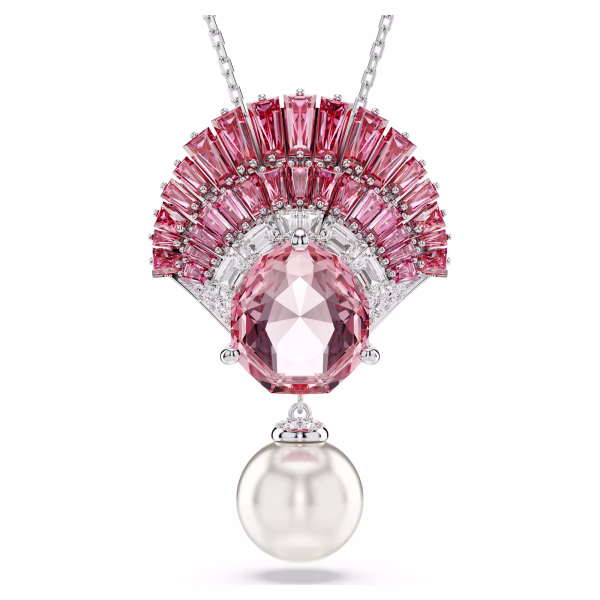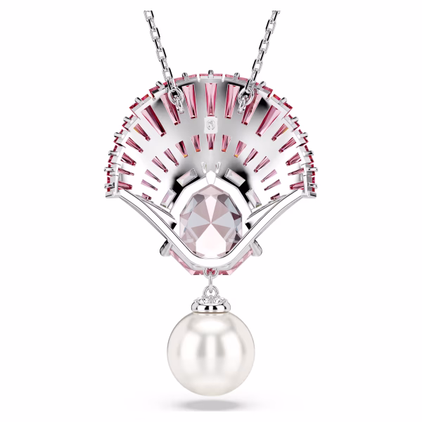 Смешанная огранка, кристальный жемчуг, ракушка, розовый, родированное покрытие.