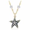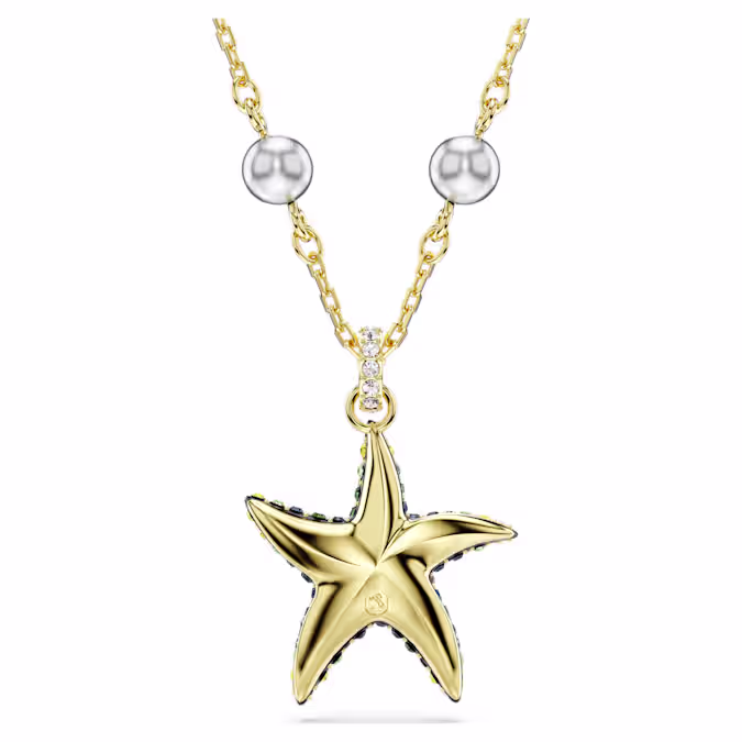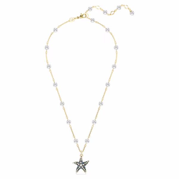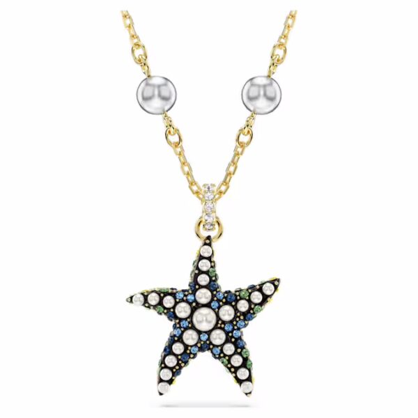 Изготовленный с глубоким воображением, этот кулон — обязательное сокровище из океана Идиллия. Надетый на изящную цепочку со светло-серыми кристальными жемчужинами, позолоченный дизайн имеет мотив морской звезды, красиво украшенный разнообразными белыми кристальными жемчужинами и ослепительными кристаллами в морских цветах. Чудесный способ наполнить ваш стиль радостью.
