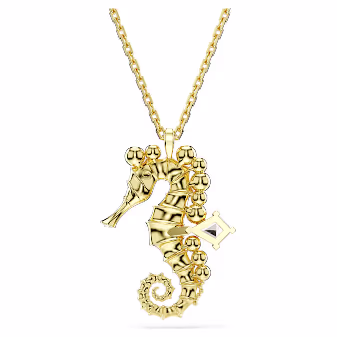 Погрузитесь в подводный мир Swarovski с этой игривой подвеской в ​​виде морского конька. Это потрясающее изделие, надетое на изящную цепочку, украшено морским мотивом, искусно созданным из множества кристальных жемчужин, прозрачных кристаллов и белых цирконий Swarovski. Дополненный яркими штрихами золотистого металла, его дизайн обязательно разожжет воображение. Носите его в любое время, когда почувствуете зов моря.