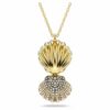 Сохраните свою любовь к пляжу с помощью этого значимого кулона Idyllia. Позолоченное изделие носится на изящном ожерелье и имеет медальон в виде ракушки, который открывается, чтобы показать свои собственные сокровища внутри. Внутри ракушка искусно украшена прозрачными круглыми кристаллами, помещенными в черную оправу, а в центре находится одиночная кристальная жемчужина. Носите этот кулон с вашим повседневным стилем, и океан никогда не будет далеко.