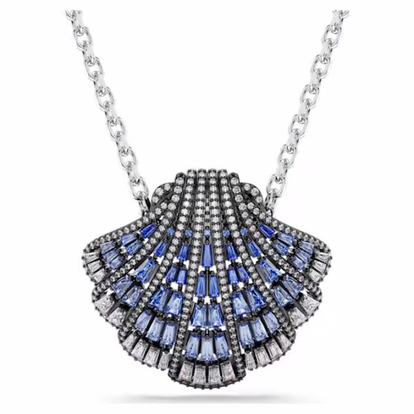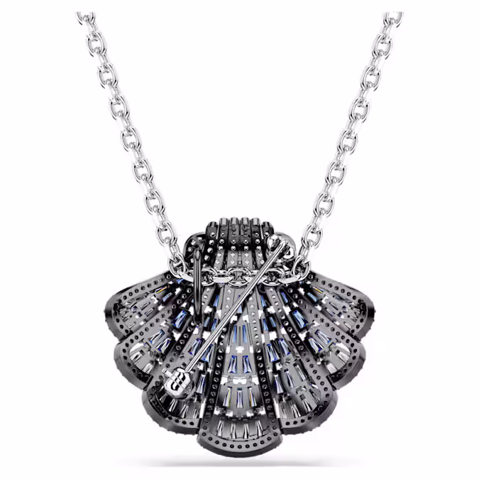 Это вдохновленное океаном украшение из серии Idyllia можно носить как кулон или брошь. Ракушка покрыта рутением и украшена множеством прозрачных круглых кристаллов, а также пленительным градиентом Swarovski Zirconia в прозрачных и синих тонах. В качестве кулона его носят на цепочке с родиевым покрытием, привнося прохладную волну стиля в любой наряд.