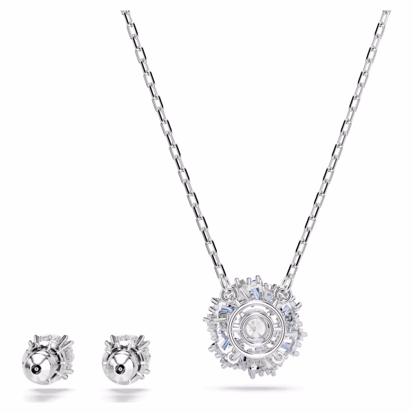 Придайте своему стилю сияние с помощью этого набора Idyllia, вдохновленного природой. Подвеска с родиевым покрытием, носимая на тонкой цепочке, украшена ярким цветочным мотивом, искусно выполненным из освежающих синих и прозрачных цирконов Swarovski, с игривым танцующим камнем в центре. Каждый из соответствующих сережек-гвоздиков также украшен прозрачным цирконием Swarovski, элегантно закрепленным в двойной оправе. Простое, но эффектное сочетание, которое подчеркнет любой образ.