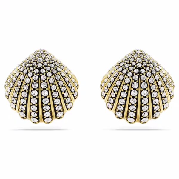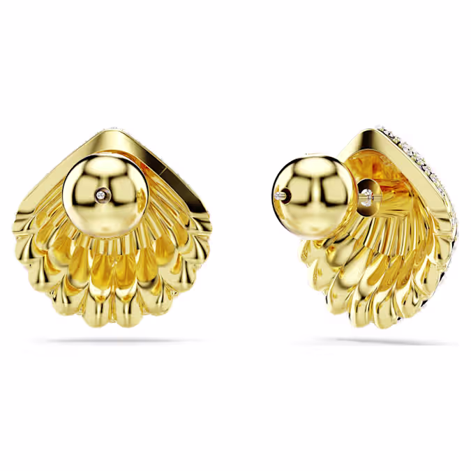 Эти нежные серьги-гвоздики Idyllia вдохновлены океаном и привносят идеальный штрих природной красоты. Каждое позолоченное изделие имеет пленительный мотив ракушки, который был искусно украшен прозрачными круглыми кристаллами, закрепленными в черной эпоксидной смоле. Завершенные застежкой-шариком, они являются прекрасным утонченным способом подчеркнуть ваш пляжный шик.