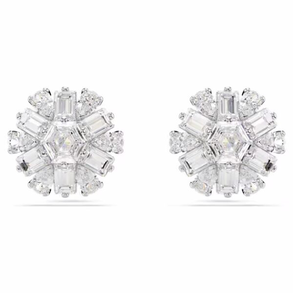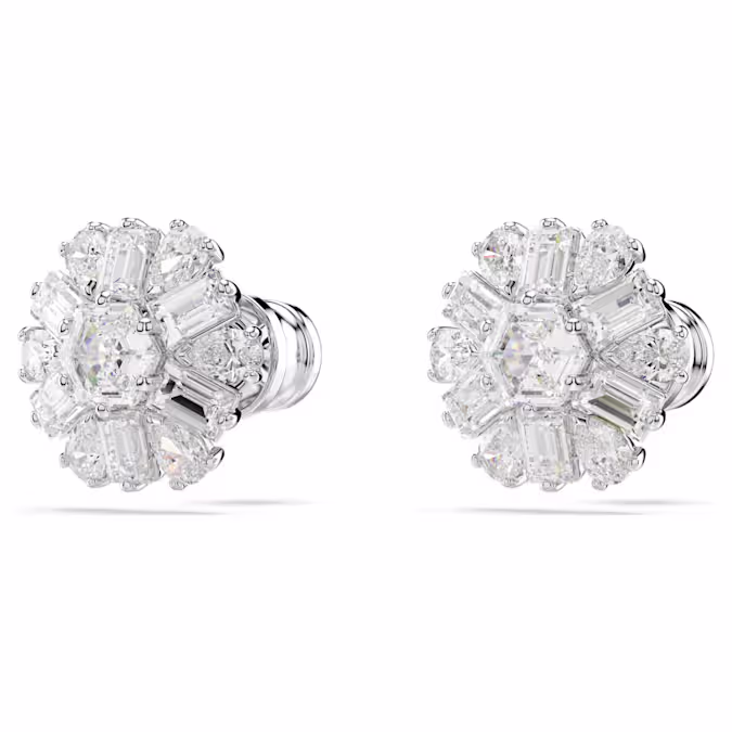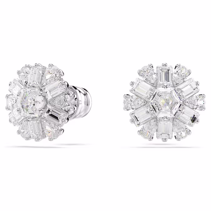 Откройте для себя исключительное мастерство этих сережек-гвоздиков, вдохновленных снежинками. Каждое изделие с родиевым покрытием застыло на месте с массивом прозрачных фианитов Swarovski в зубчатой оправе, отражающих прохладное сияние льда в сумерках. Сочетайте с соответствующим кулоном или браслетом, чтобы усилить эффект.