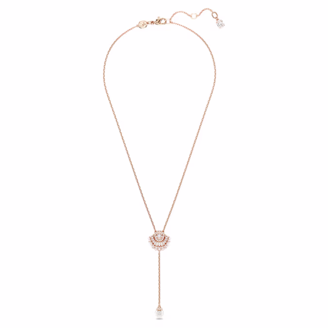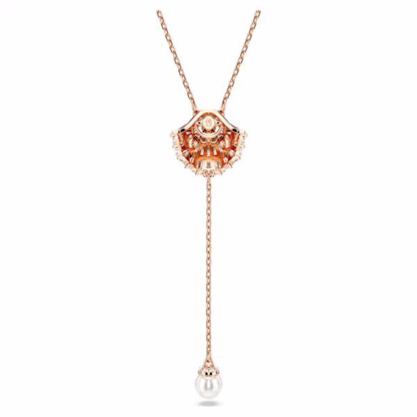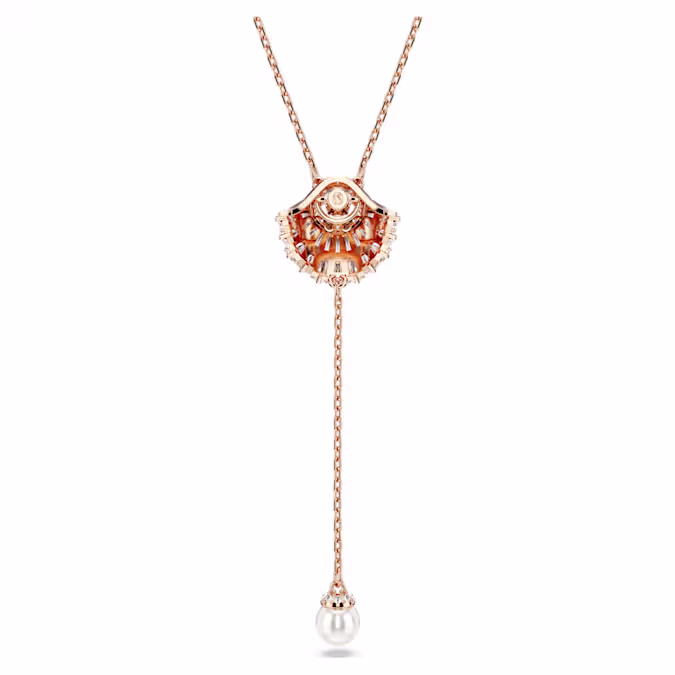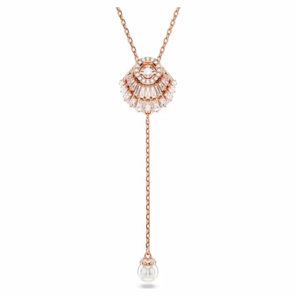 Ощутите спокойствие моря с этим вдохновленным океаном кулоном из серии Idyllia. Ракушка покрыта розовым золотом и украшена массивом прозрачных цирконий Swarovski и прозрачным круглым танцующим кристаллом, который ловит свет. Изделие на тонкой цепочке дополняет одна белая кристальная жемчужина, которая элегантно висит снизу. Спокойное и сияющее дополнение к вашему повседневному стилю.