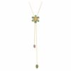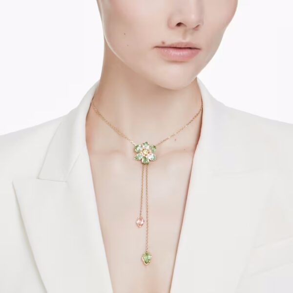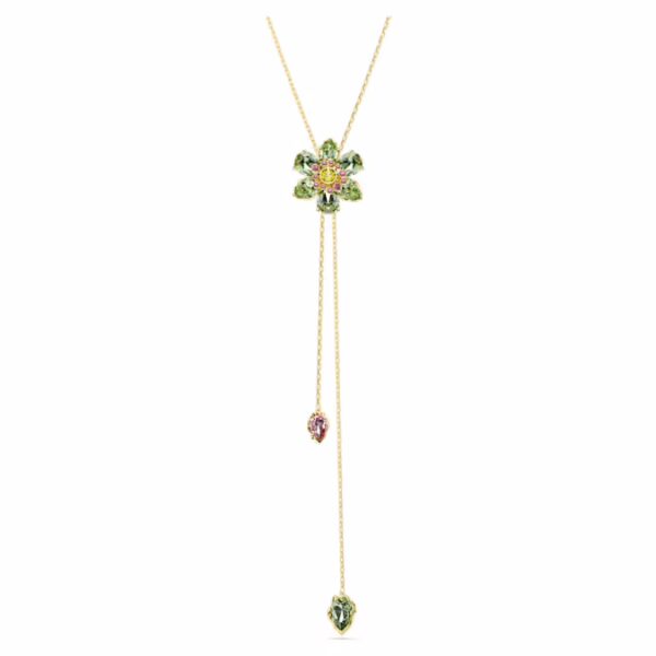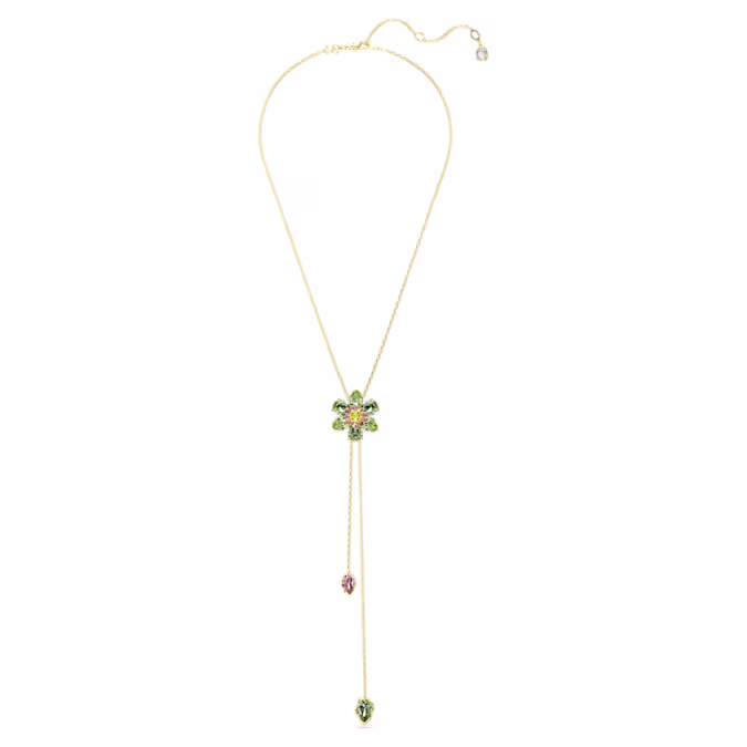 Выберите магию и чудо с этим сияющим V-образным кулоном из сада Идиллия. Подвешенный на тонкой цепочке, центральный мотив имеет форму цветка с ярко-зелеными лепестками, выполненными в разных формах и оттенках. Два дополнительных кристалла висят ниже в розовом и зеленом цветах, а раздвижной механизм позволяет вам легко отрегулировать посадку. Радостный способ дополнить свой стиль аксессуарами или игривый подарок для того, кого вы любите.