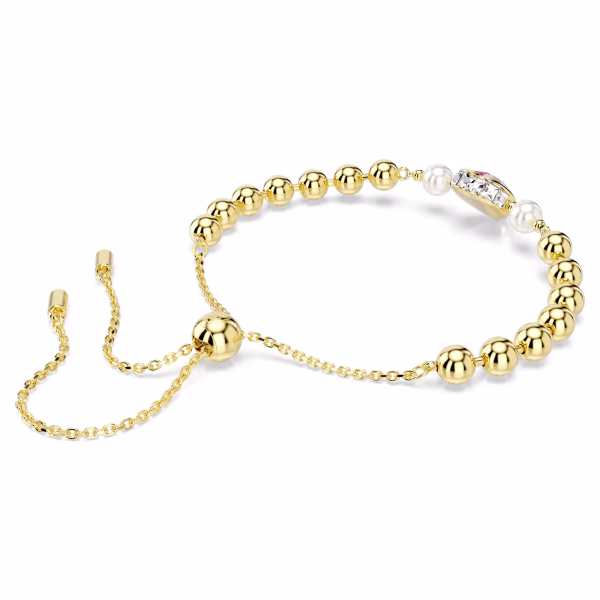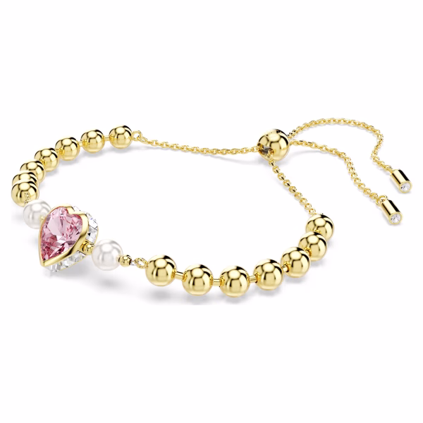 Пусть ваша любовь сияет ярко с этим романтичным браслетом Imber. Дизайн с золотистым покрытием украшен центральным мотивом в форме сердца, выполненным из розового кристалла и более мелких прозрачных кристаллов по краю. По бокам браслета расположены белые кристаллы Swarovski и цепочка из блестящих металлических шариков. Застежка-слайдер позволяет легко регулировать размер под любое запястье. Подарите этот браслет особенному человеку, чтобы выразить свои самые сокровенные чувства.