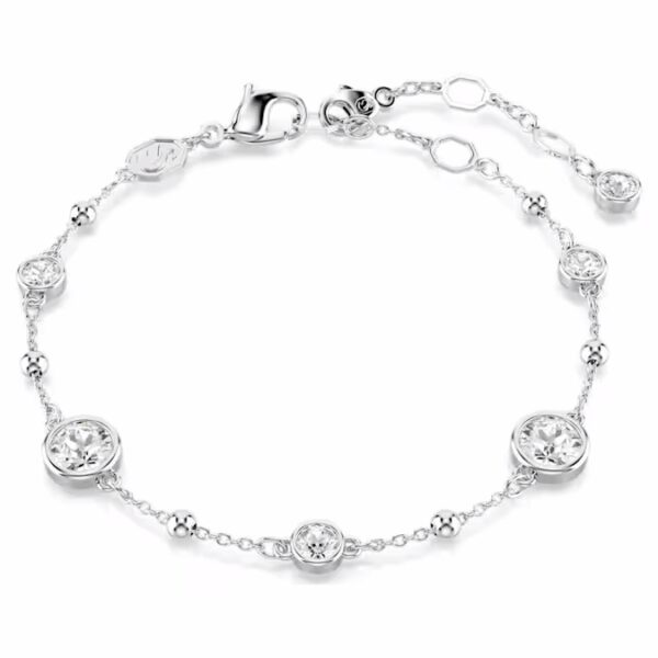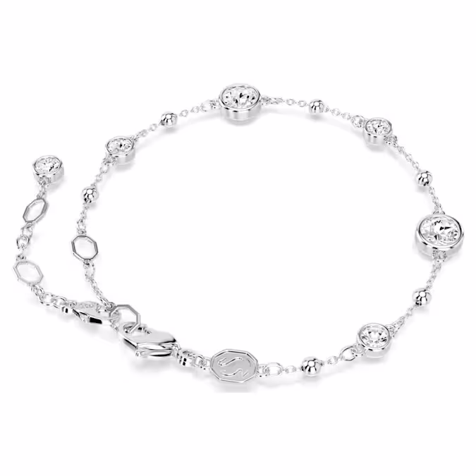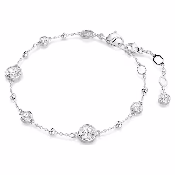 Этот браслет Imber с динамичной нитью металлических капель придаст вашему запястью характерное мерцание. Покрытый родием дизайн подчеркивается ослепительными круглыми кристаллами в пухлой оправе. Дополненный застежкой-карабином и дополнительным удлинением, браслет можно носить как отдельное изделие или в паре с соответствующим набором гвоздиков из того же семейства.