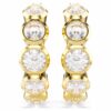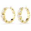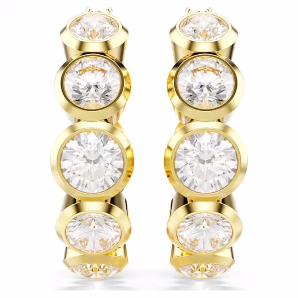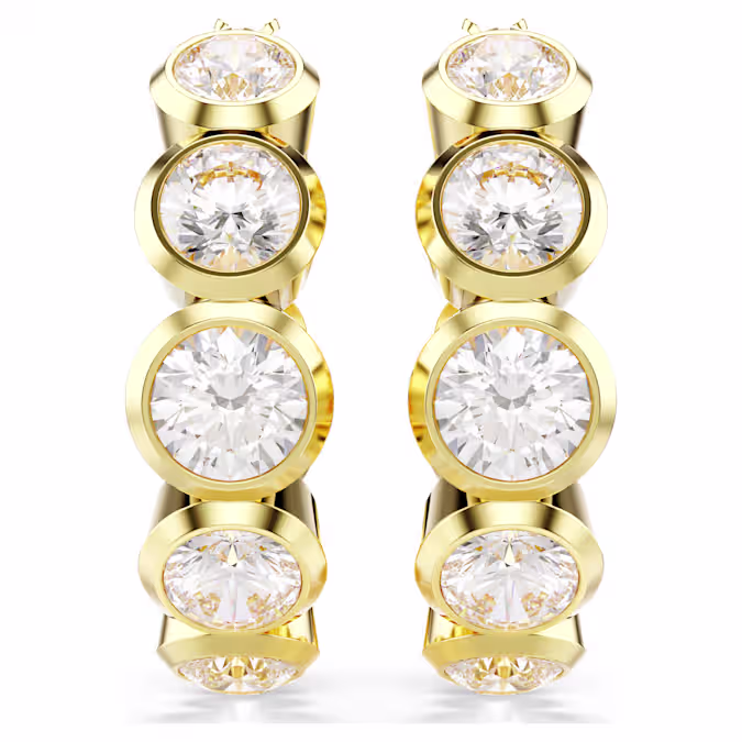 Увеличьте свою элегантность с помощью этих сияющих мини-колец. Позолоченные изделия искусно выполнены с кругом из круглого циркония Swarovski, каждый из которых помещен в современную оправу и представлен в градиенте размеров. Идеальная пара для повседневной изысканности или сияющий выбор для вечернего гламура.