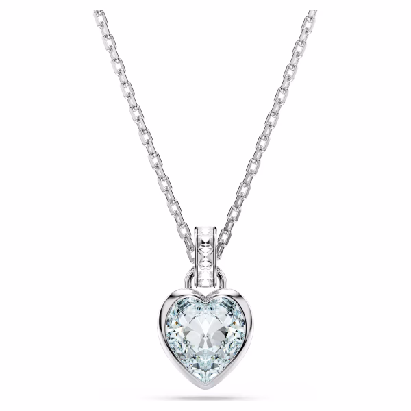 В этом двустороннем кулоне Imber выражены две пленительные стороны любви. Подвешенный на тонкой цепочке, родированный дизайн выполнен в форме сердца, с одной стороны украшен бледно-голубым кристаллом, а с другой — сверкающей инкрустацией из прозрачных кристаллов. Края также красиво отделаны мелкими прозрачными кристаллами. Подарите этот кулон любимому человеку — это будет универсальное романтическое украшение.