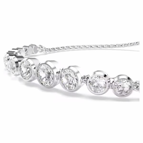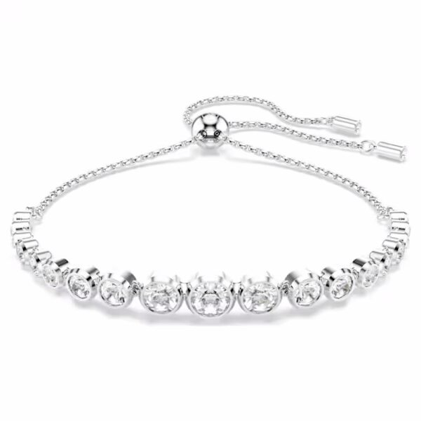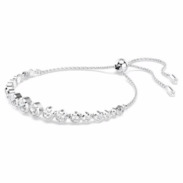 Этот браслет с родиевым покрытием, созданный для повседневной элегантности, излучает простоту семейства Imber. Дизайн представляет собой градиент прозрачных круглых кристаллов, каждый из которых помещен в современную оправу безеля на мягкой цепочке, с раздвижной застежкой для удобства ношения. Каждая нежная капля придает вашему запястью сияющую изысканность, давая вам украшение, которое можно игриво сочетать с другими стилями.