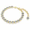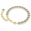 Подчеркивая любой наряд, этот браслет Imber окружит ваше запястье светящейся радостью. Позолоченный дизайн представляет собой целую нить круглых синих кристаллов в пухлой оправе и дополнен застежкой-лобстером. Сочетайте его с соответствующим ожерельем, чтобы улучшить свой повседневный стиль.