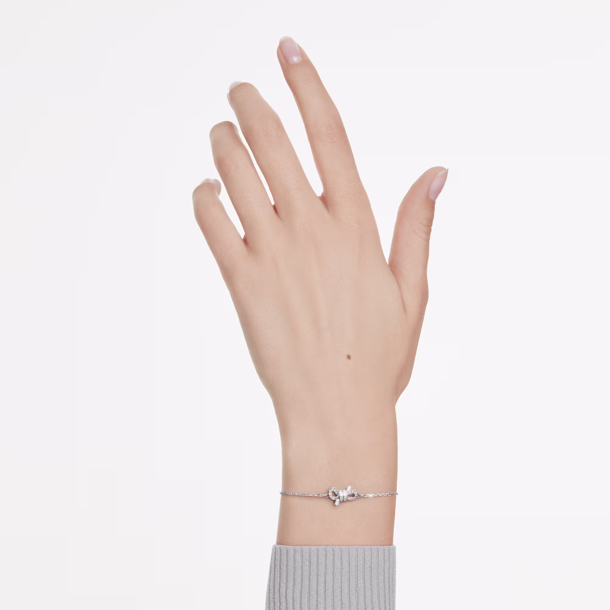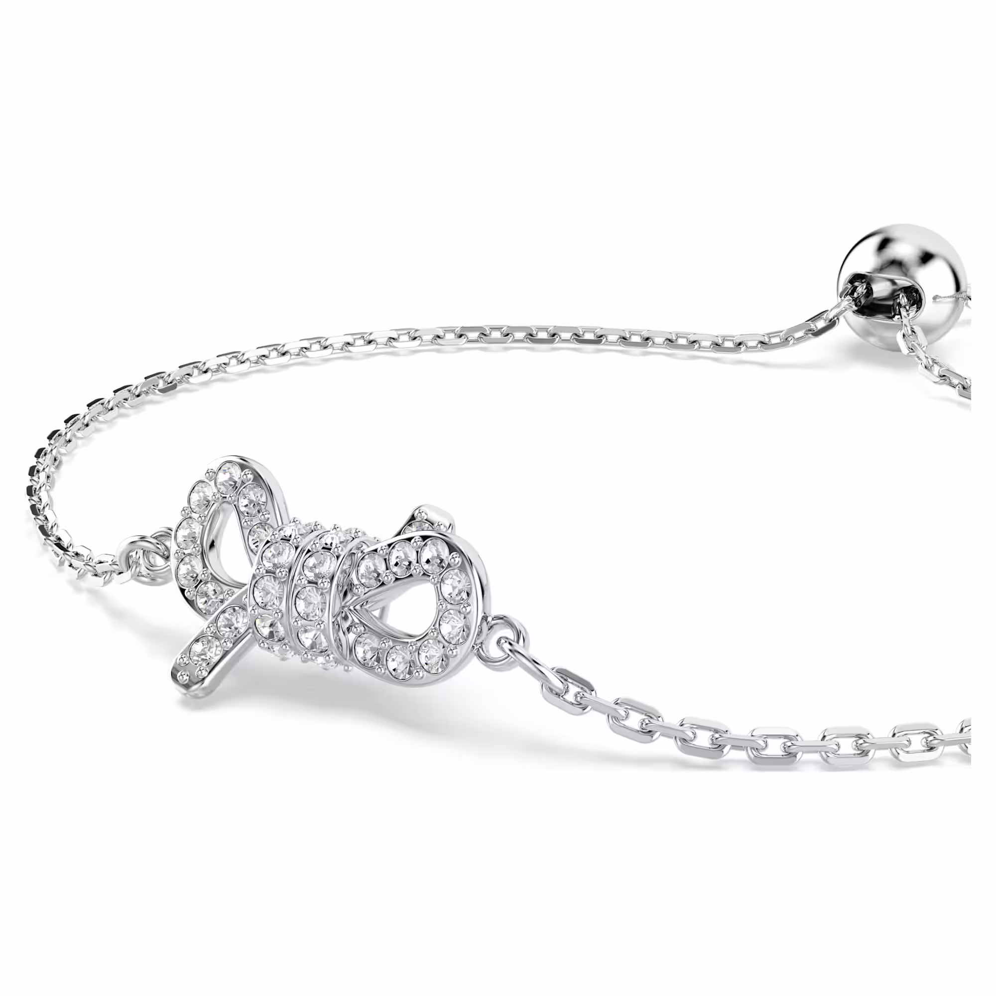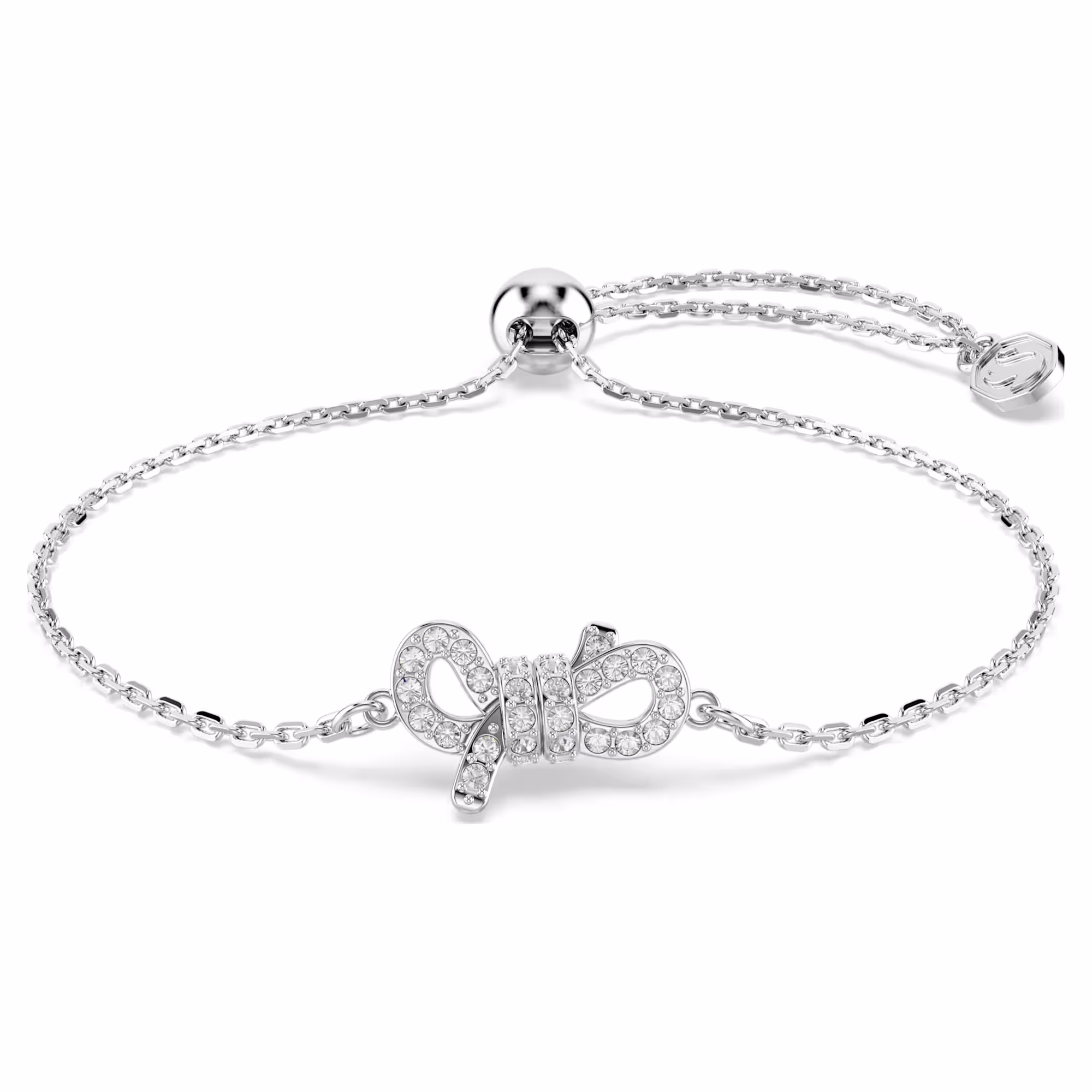 Этот браслет Swarovski, искусно завязанный в родированный бант, сочетает в себе изысканность и выразительный стиль. Элегантный 3D-силуэт украшен прозрачными кристаллами, а скользящая застежка обеспечивает регулируемую посадку. Этот уникальный браслет можно сочетать с подходящим кулоном или серьгами.