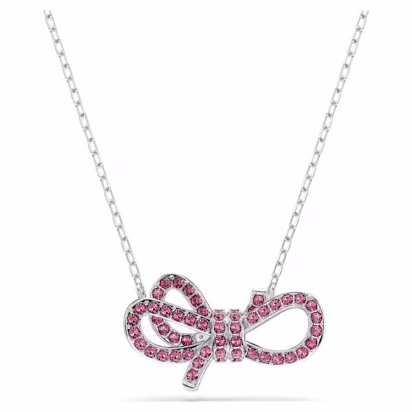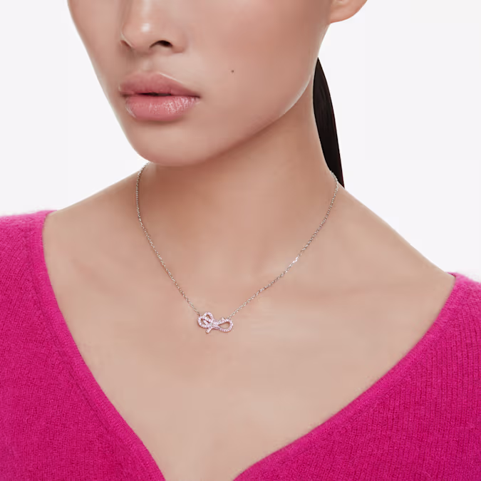 Идеально подходит в качестве подарка любви, этот кулон предлагает игривый символ романтики. Подвешенный на тонкой цепочке, 3D-бантик изготовлен с родиевым покрытием и имеет завязанный силуэт с паве из розовых кристаллов. Значимый способ отпраздновать свою привязанность к кому-то особенному.
