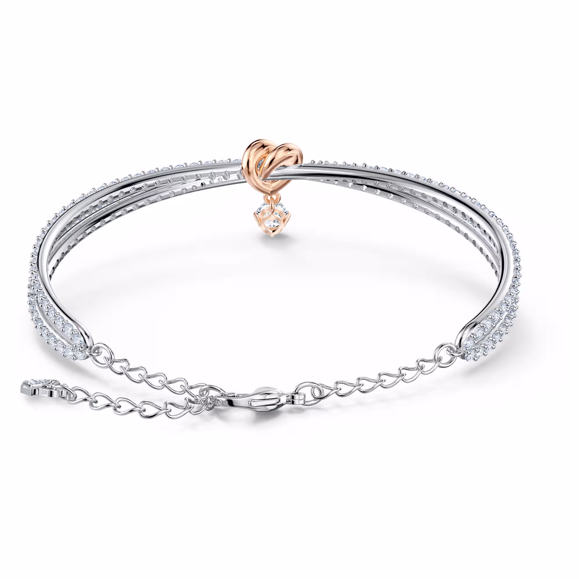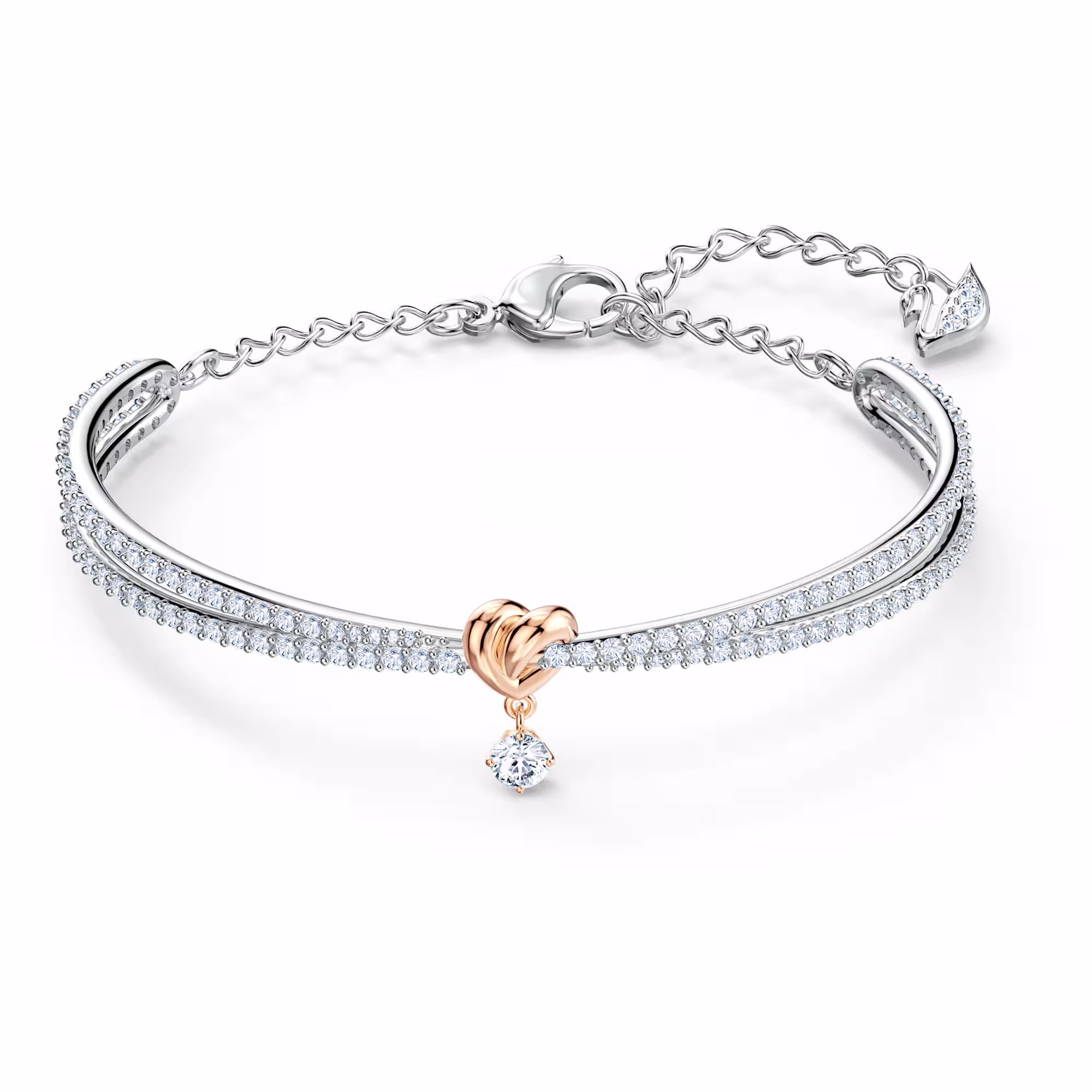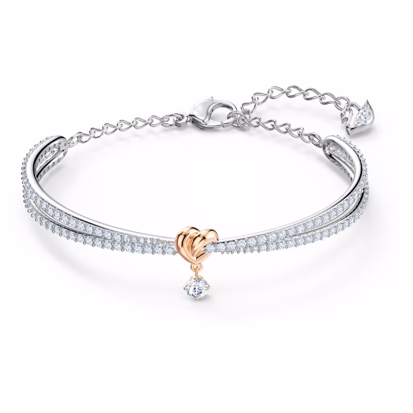 Изысканные детали, такие как изогнутое сердце с покрытием из розового золота, дополняют элегантный дизайн. Мастерски изготовленные материалы идеально сочетаются, создавая вневременной шедевр. Этот прекрасный браслет порадует тех, кто дарит такие подарки своим близким.