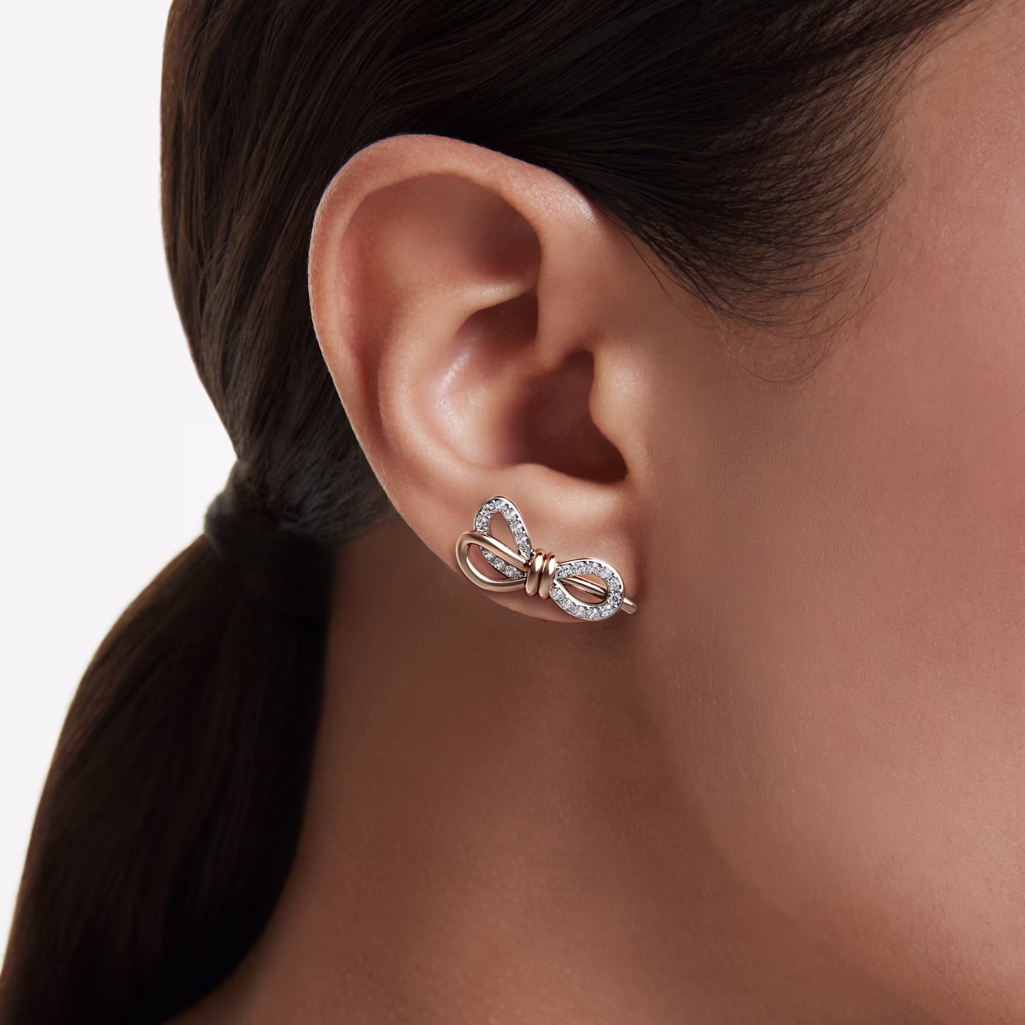 Эти серьги Swarovski, символизирующие единство и тесные связи, станут прекрасным дополнением вашего стиля. Каждая объемная деталь украшена родиевым и розово-золотым покрытием, а бант декорирован прозрачными кристаллами. Носите их, чтобы придать любому образу значимость и романтику.