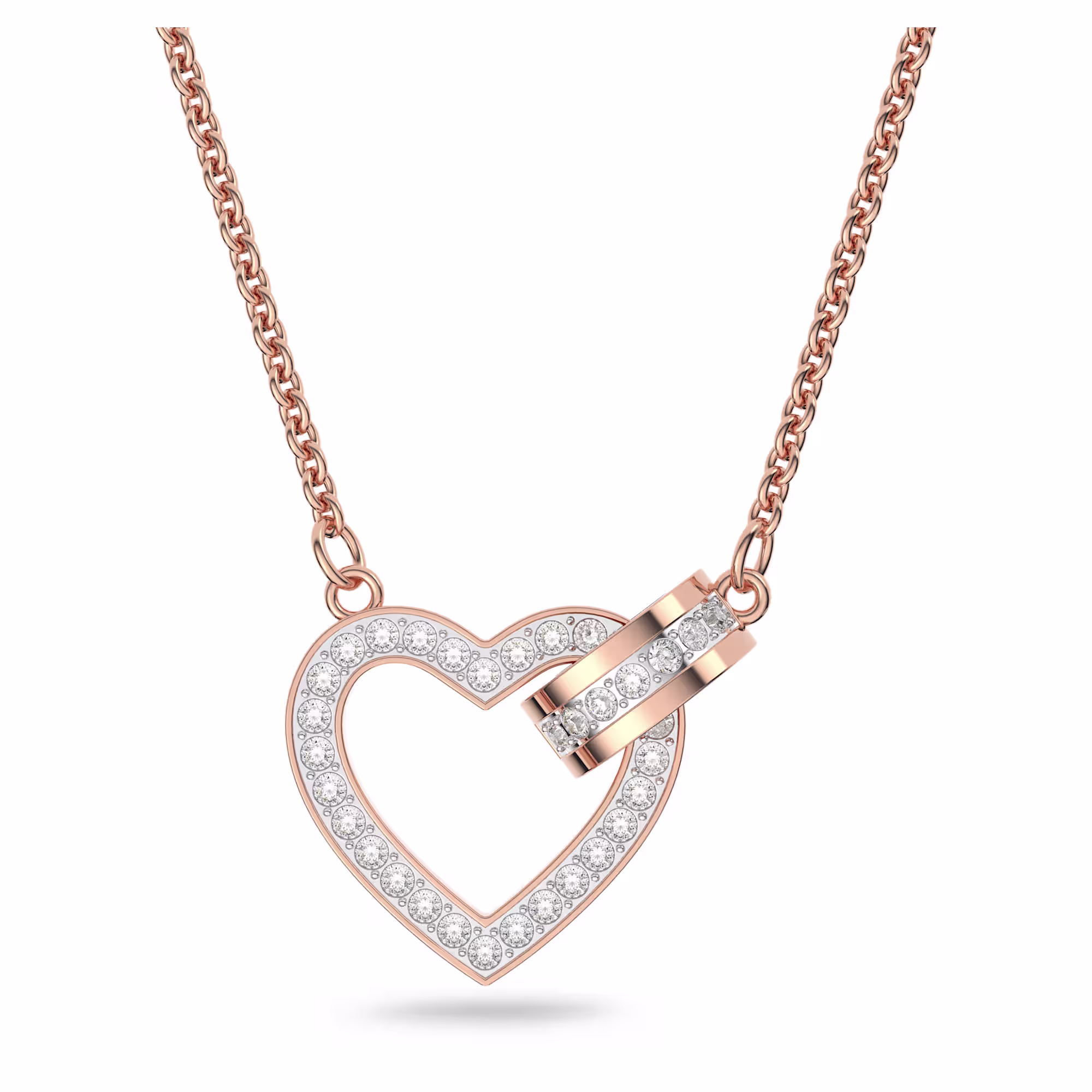 Бестселлер — колье Lovely, украшенное переплетающимися сердцем и кругом, инкрустированными прозрачными кристаллами в оправе из 18-каратного розового золота. Незаменимый аксессуар, который добавит красоты и любви вашему образу.