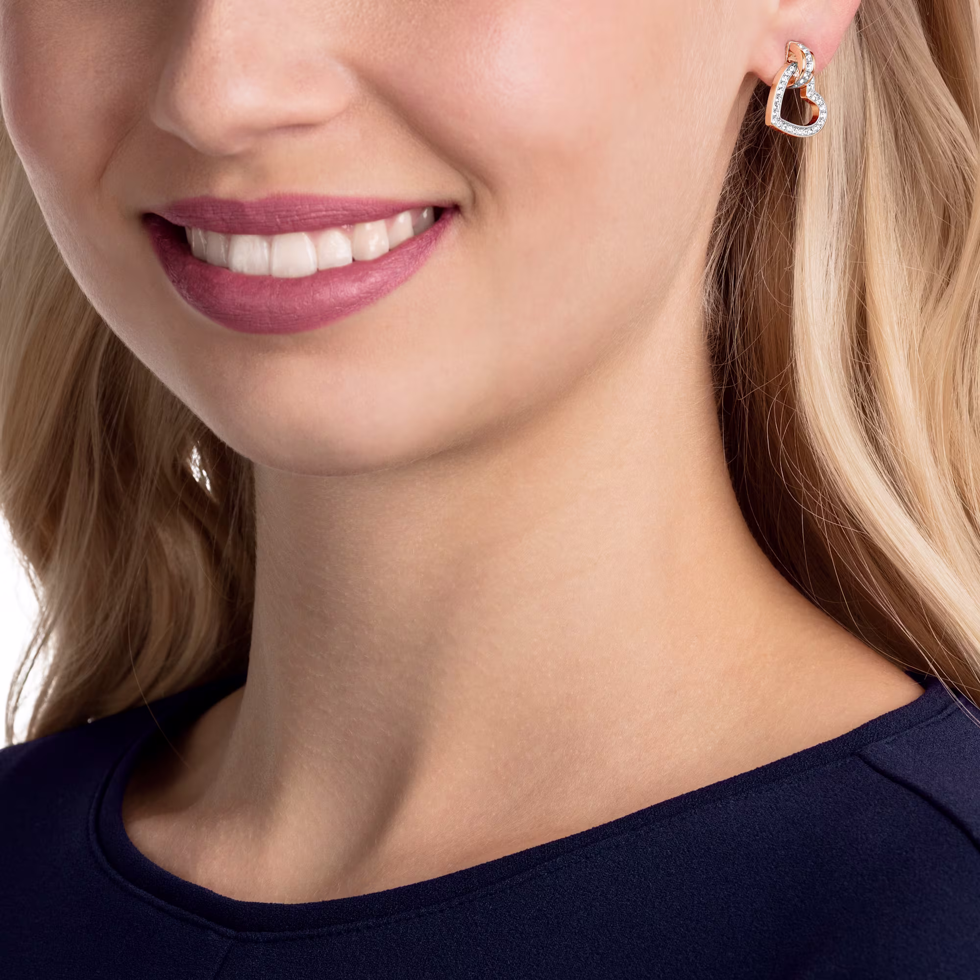 Lovely Pierced Earrings, Small, украшены переплетающимися сердечками и кругами, символизирующими уникальную связь между двумя людьми. Дизайн с покрытием из розового золота инкрустирован прозрачными кристаллами Swarovski для особого сияния. Сочетайте их с другими украшениями Lovely для большей эффектности.