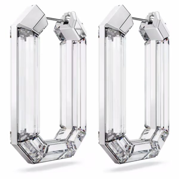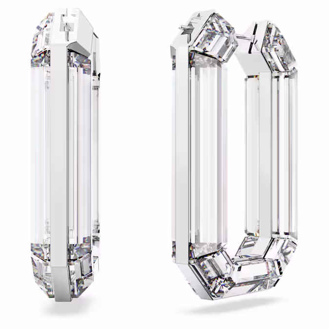 Эти эффектные серьги-кольца Lucent украсят любой образ своим сияющим светом. Разработанные в фирменной восьмиугольной форме Swarovski, каждое изделие имеет родиевое покрытие с кристаллизованными гранями, которые выглядят смелыми и яркими. Носите эти прозрачные серьги-кольца с соответствующим кольцом Lucent, чтобы усилить эффект.