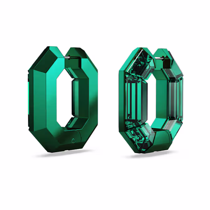 Эти привлекающие внимание мини-серьги-кольца темно-зеленого цвета — яркий пример насыщенного стиля Swarovski. Каждое кристаллизованное изделие имеет цветной металл с одной стороны, а также тонкую застежку-штифт и легко открывающийся шарнирный механизм. Идеальный способ придать любому наряду спортивный роскошный вид.
