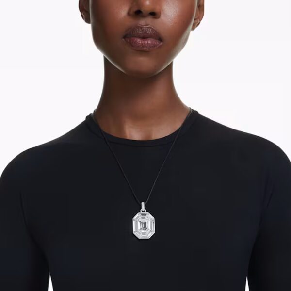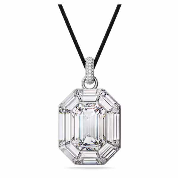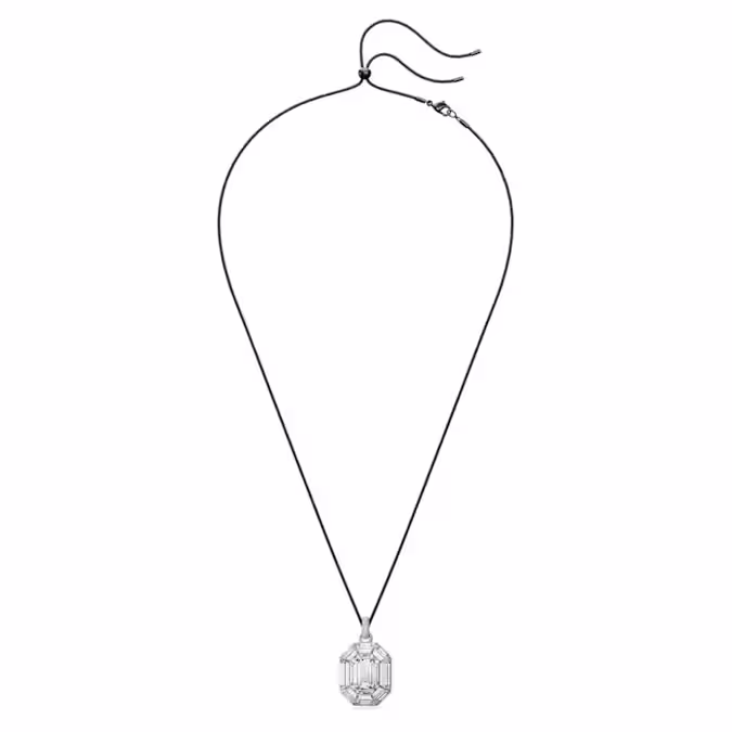 Эта изысканная подвеска Lucent демонстрирует мастерство Swarovski в огранке в лучшем виде. Подвешенная на вощеном хлопковом шнуре со скользящей застежкой для легкой регулировки длины, динамичный дизайн отличается большим восьмиугольным прозрачным кристаллом, прикрепленным к дужке, украшенной тонким паве. Стиль с соответствующим набором серег, чтобы выделиться из толпы.